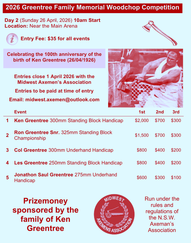 10:00am: Greentree Family Memorial Woodchop
