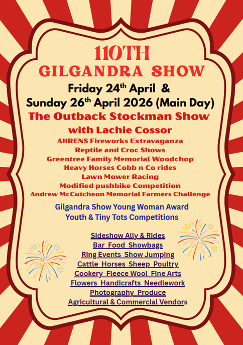 - Gilgandra Show Society reserves the right to alter or cancel any event without prior notice.